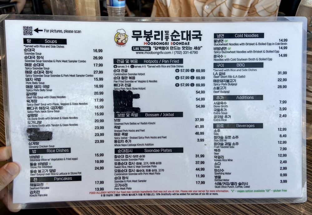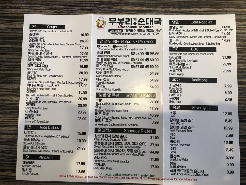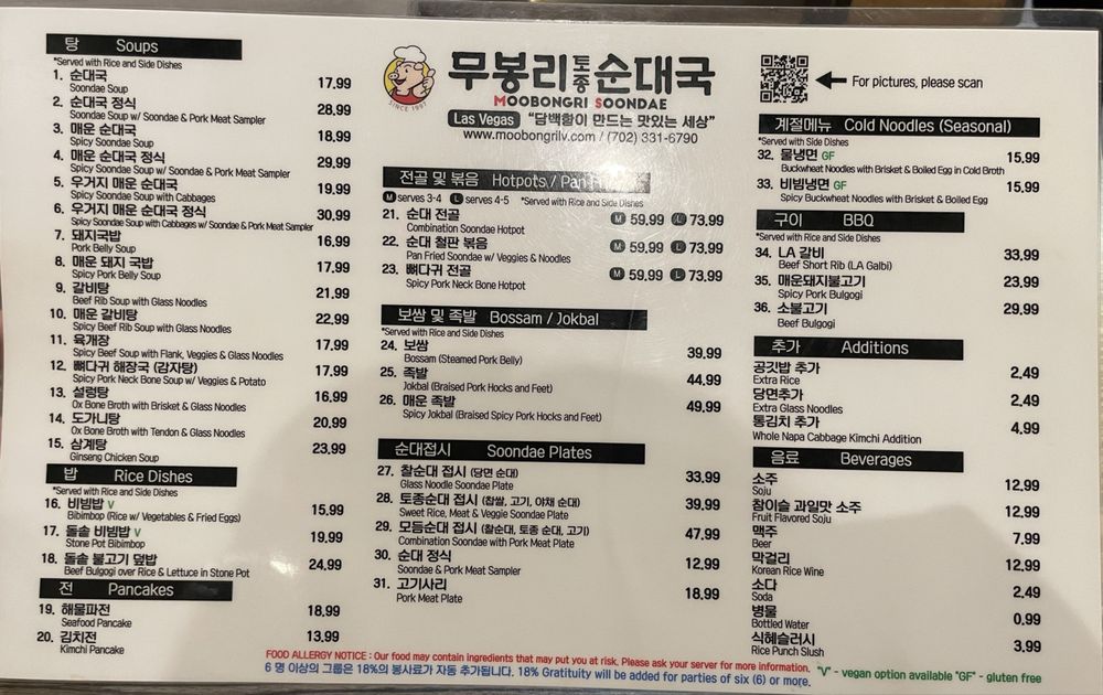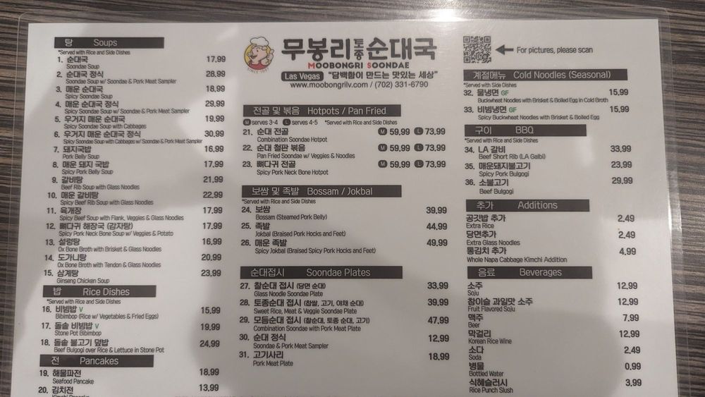 Moobongri Soondae, a Korean restaurant located in Las Vegas, offers a variety of delicious soup and noodle dishes. The menu boasts options such as Korean Blood Sausage Soup, Spicy Korean Blood Sausage Soup, and Assorted Korean Blood Sausage. Customers rave about the great food, excellent service, and clean environment. The restaurant is recommended by many, with one customer praising the authenticity and warmth of the staff. Standout dishes like the Bossam and pork bulgogi have left patrons highly satisfied. The restaurant also offers a range of amenities such as outdoor seating, catering services, and Wi-Fi, making it a versatile and convenient dining choice. For a taste of genuine Korean cuisine in Vegas, Moobongri Soondae is the go-to spot with its flavorful offerings and welcoming ambiance.